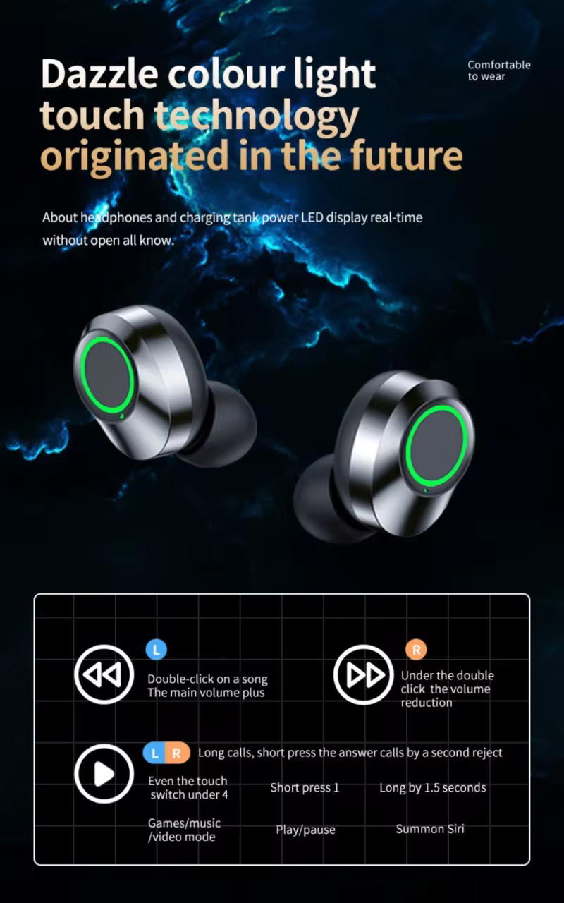• تتميز بشاشة عرض LED رقمية ذكية تعكس الحالة المتبقية للبطارية لكل سماعة أذن (L/R) والعلبة نفسها.
