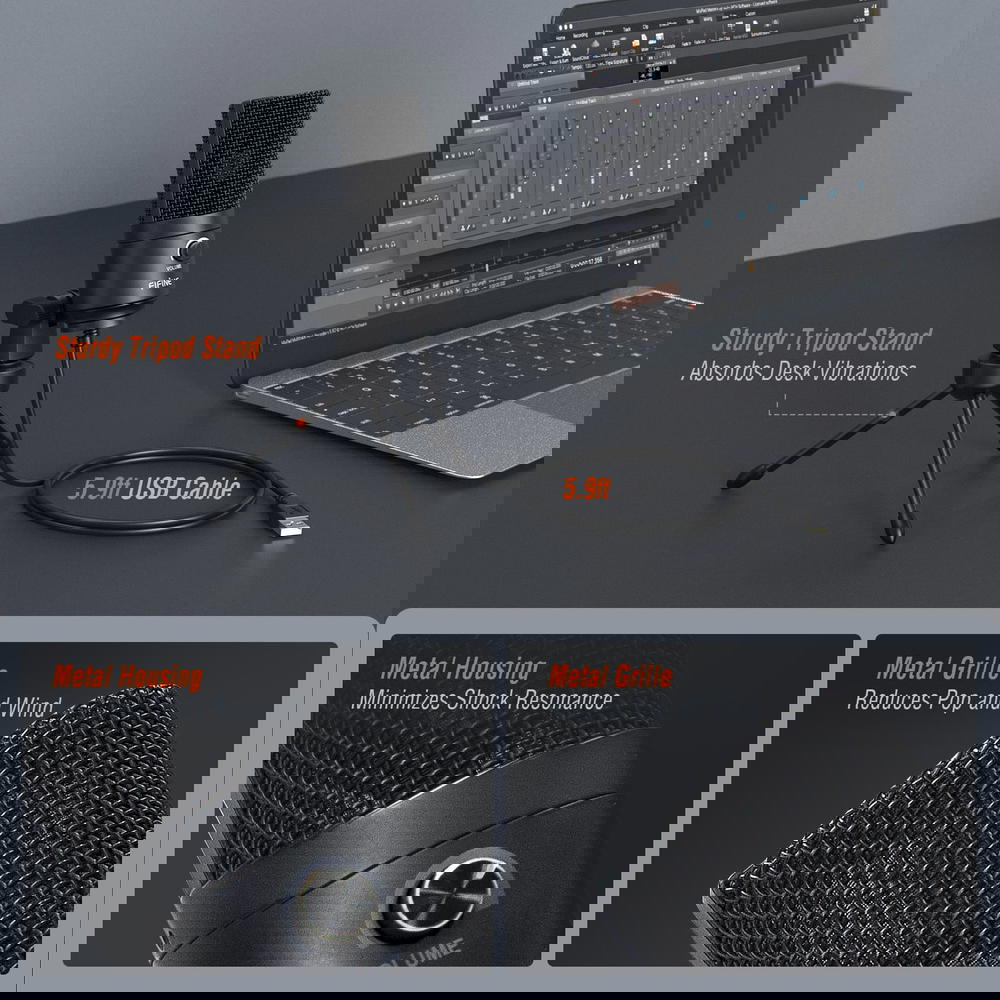 • نوع الميكروفون: ميكروفون مكثف بخرج USB لتسجيل رقمي مباشر على أجهزة الكمبيوتر.