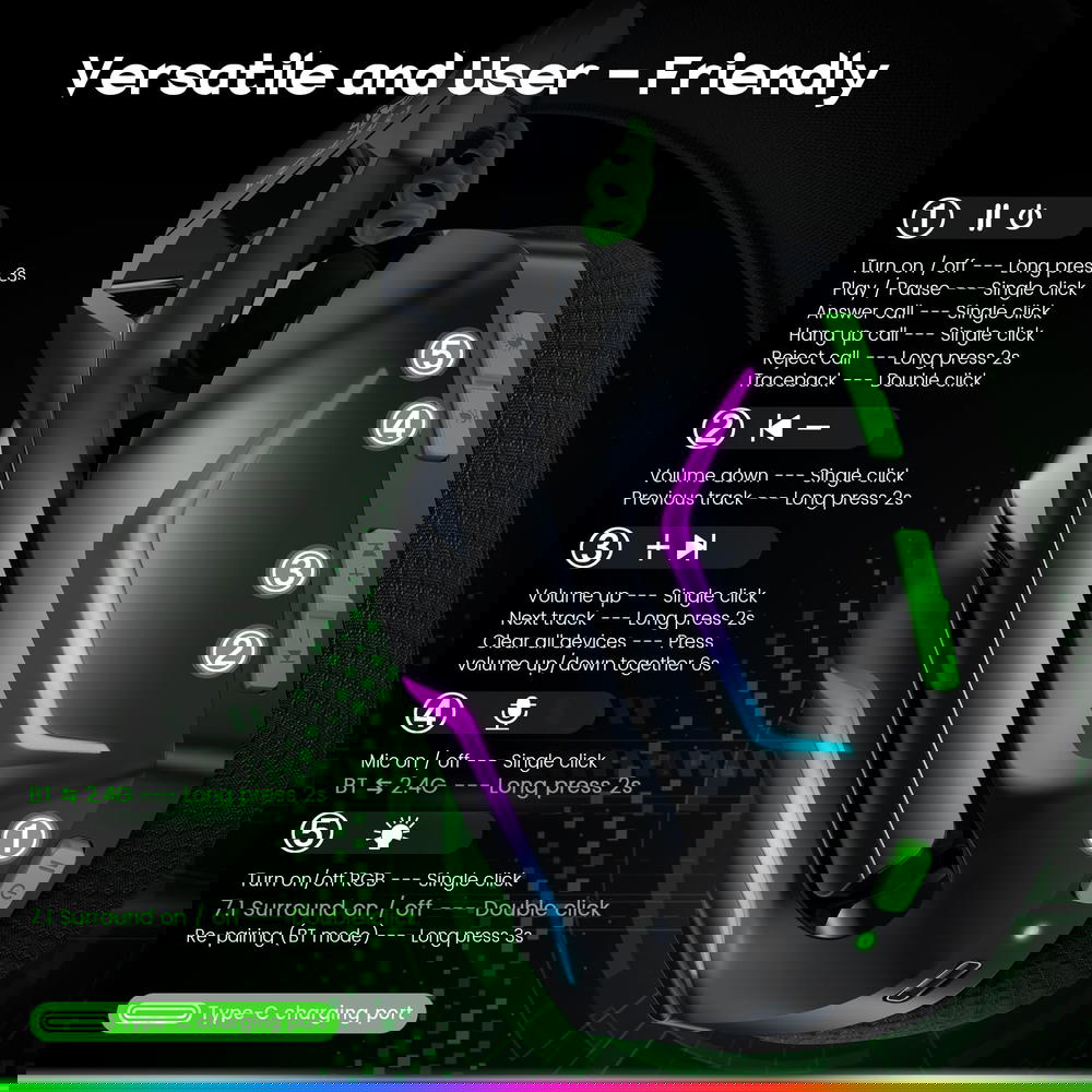 تتميز السماعة بوجود مشغل مقاس 50 ملم يوفر صوتًا محيطيًا ثلاثي الأبعاد 7.1، مما يعزز تجربة اللعب.