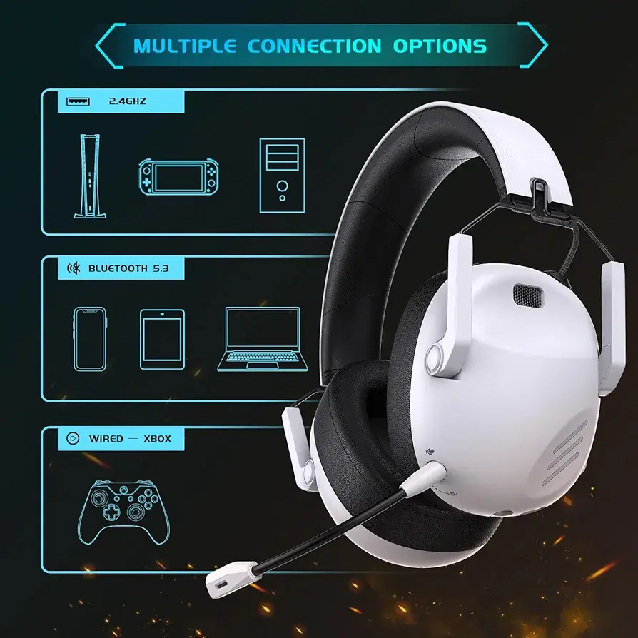 تتوافق السماعة مع أجهزة متعددة مثل الكمبيوتر الشخصي، وPS4، وPS5، والكمبيوتر المحمول، وMac، وSwitch.