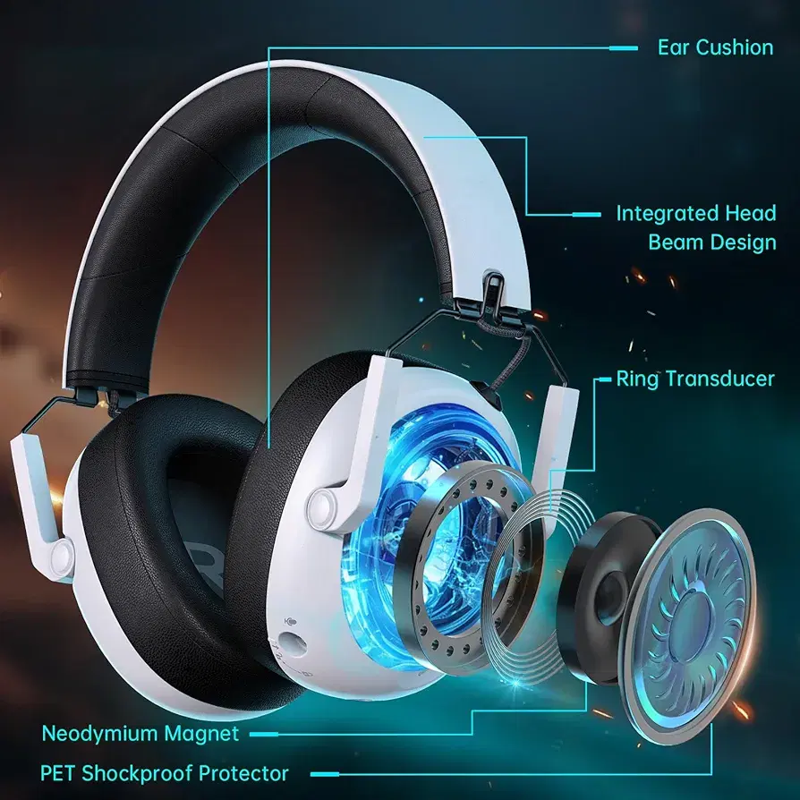 تأتي باللون الأبيض وتتميز بتصميم أنيق ومريح، مع عصابة رأس قابلة للتعديل لضمان ملاءمة مريحة.